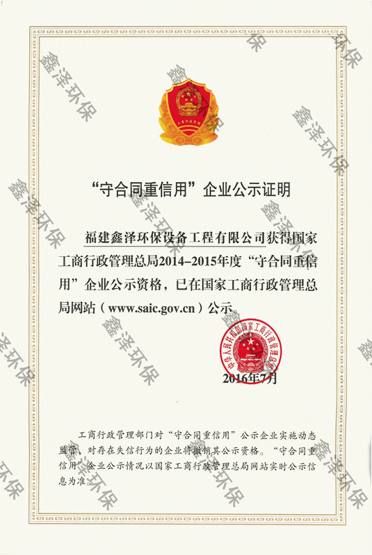 2014-2015年度国家守合同重信用企业公示证明