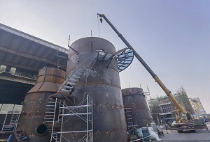 由我司承建的华东(福建)精炼糖有限公司循环流化床锅炉环保岛系统工程,本月主要完成情况如下:持液段以上吊装节均预制完成,包括下锥台、喷淋层、除雾器、塔体进口与出口等部分。11月20日业主脱硫塔基础浇筑完成,12月初开始底板持液段安装、防腐工程与大型吊装。