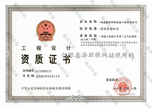 近日,住房城乡建设部公布了2019年度第四批建设工程企业资质资格名单,鑫泽环保成功取得环境工程(大气污染防治)专项设计甲级资质。
